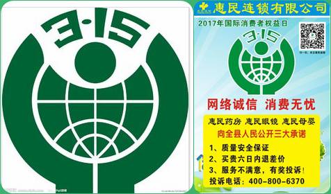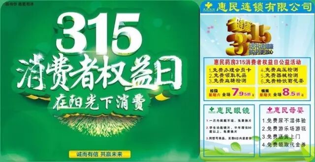 惠民药房在3.15当天将在县中心广场举行“315消费者权益公益活动”